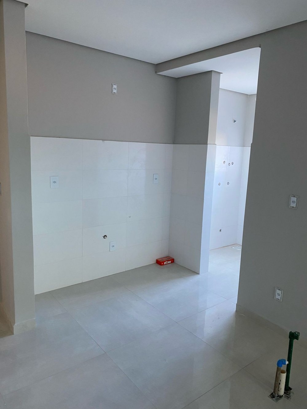 • Sala e cozinha integradas, com porcelanato, água quente e fria, gesso acartonado, central de gás individualizado, espera para climatizador (27 m²)